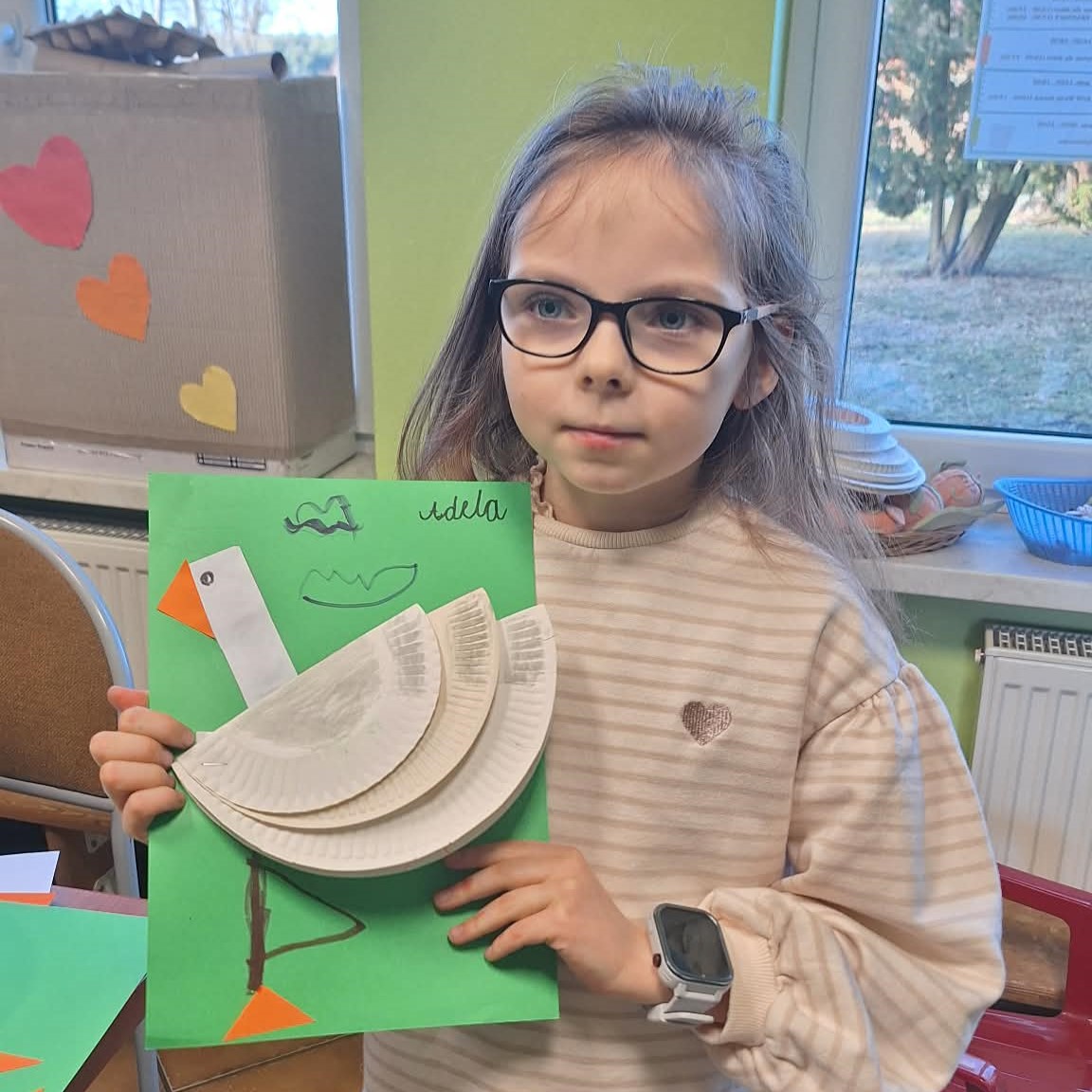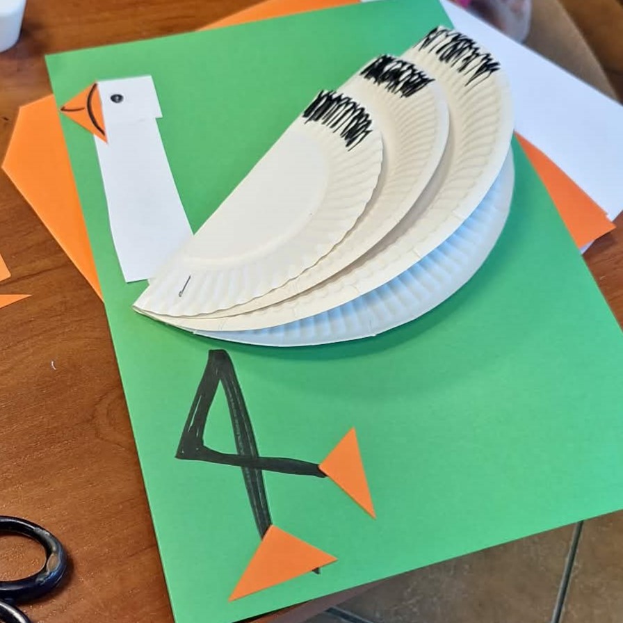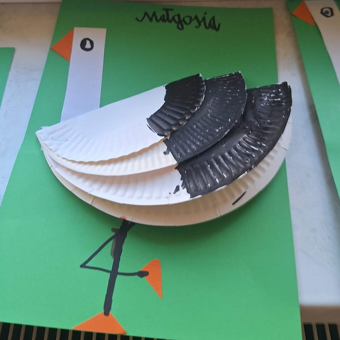 Następnie podczas zajęć manualnych mali artyści wyklejali bociana – jednego z symboli wiosny. 🕊️