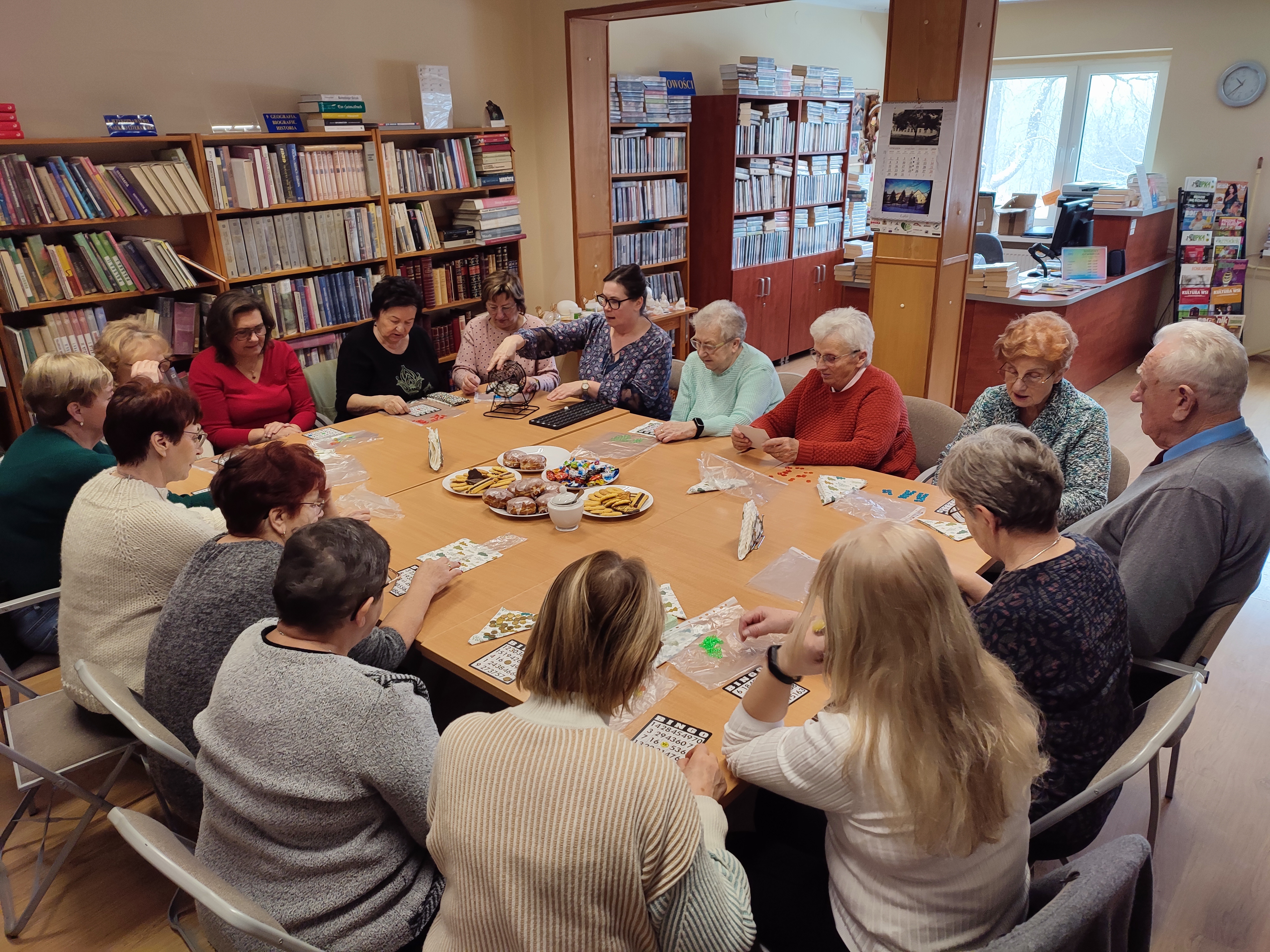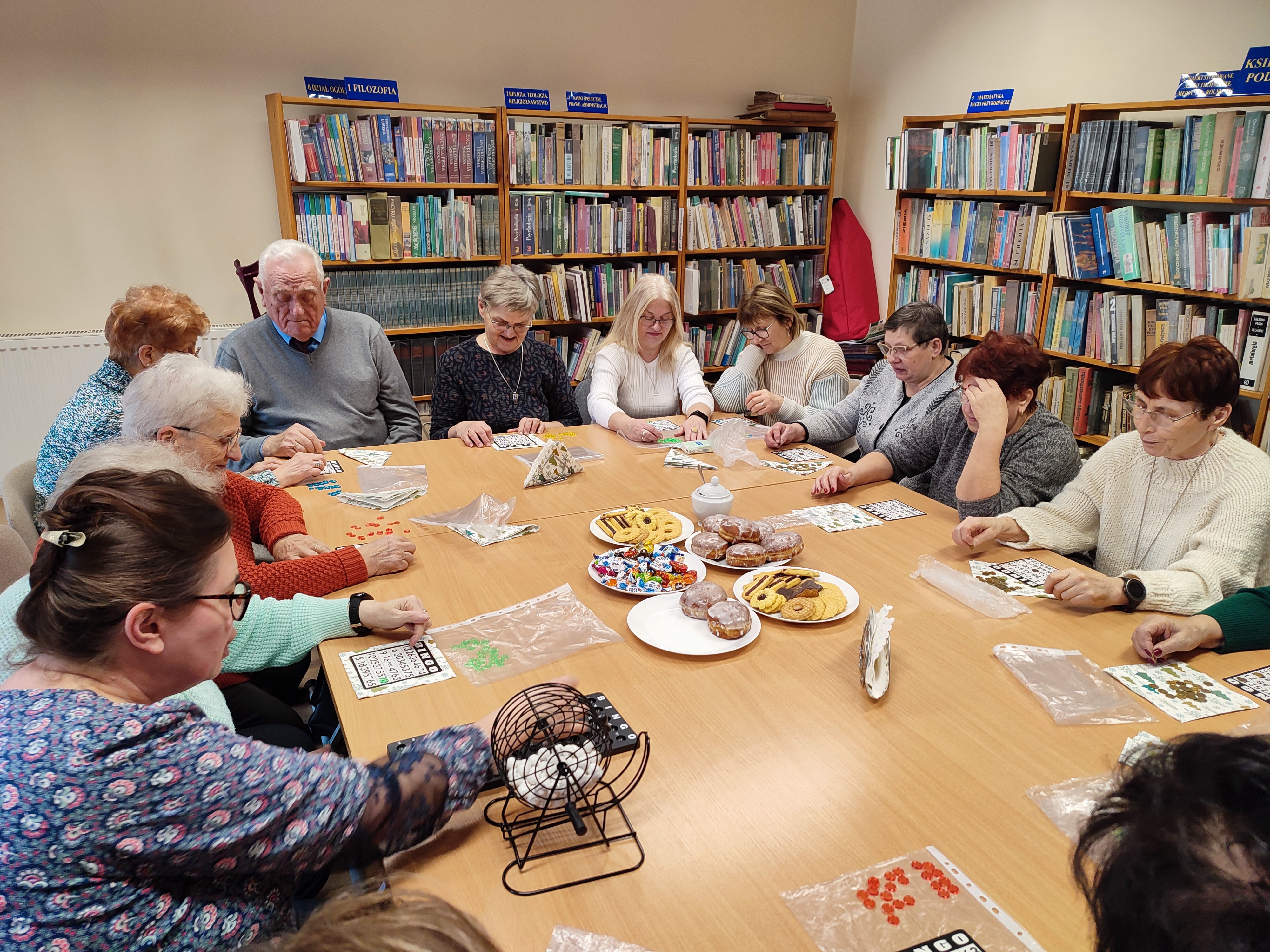 Dzieje się … oj dzieje: 12.01.2026 r. (poniedziałek) ćwiczenia z Panią Olą -naszą fizjoterapeutką, 16 stycznia spotkanie noworoczne, na którym życzyliśmy sobie zdrowia i radości na ten Nowy Rok, a 11 lutego dzień pączka(tłusty czwartek) i gry BINGO. Przy smacznym pączku i kawie ,grupa zagrała pierwszy raz w grę o nazwie BINGO. Na stoliku przygotowane były fanty dla tych, którzy jako pierwsi krzyczeli BINGO i nagroda główna dla osoby, która zapełniła całą kartę i krzyknęła ,,dom’’. Były niesamowite emocje, wszystkim bardzo się podobało. I tak na rozmowach, smacznym pączku i grze spędziliśmy radośnie kilka godzin.