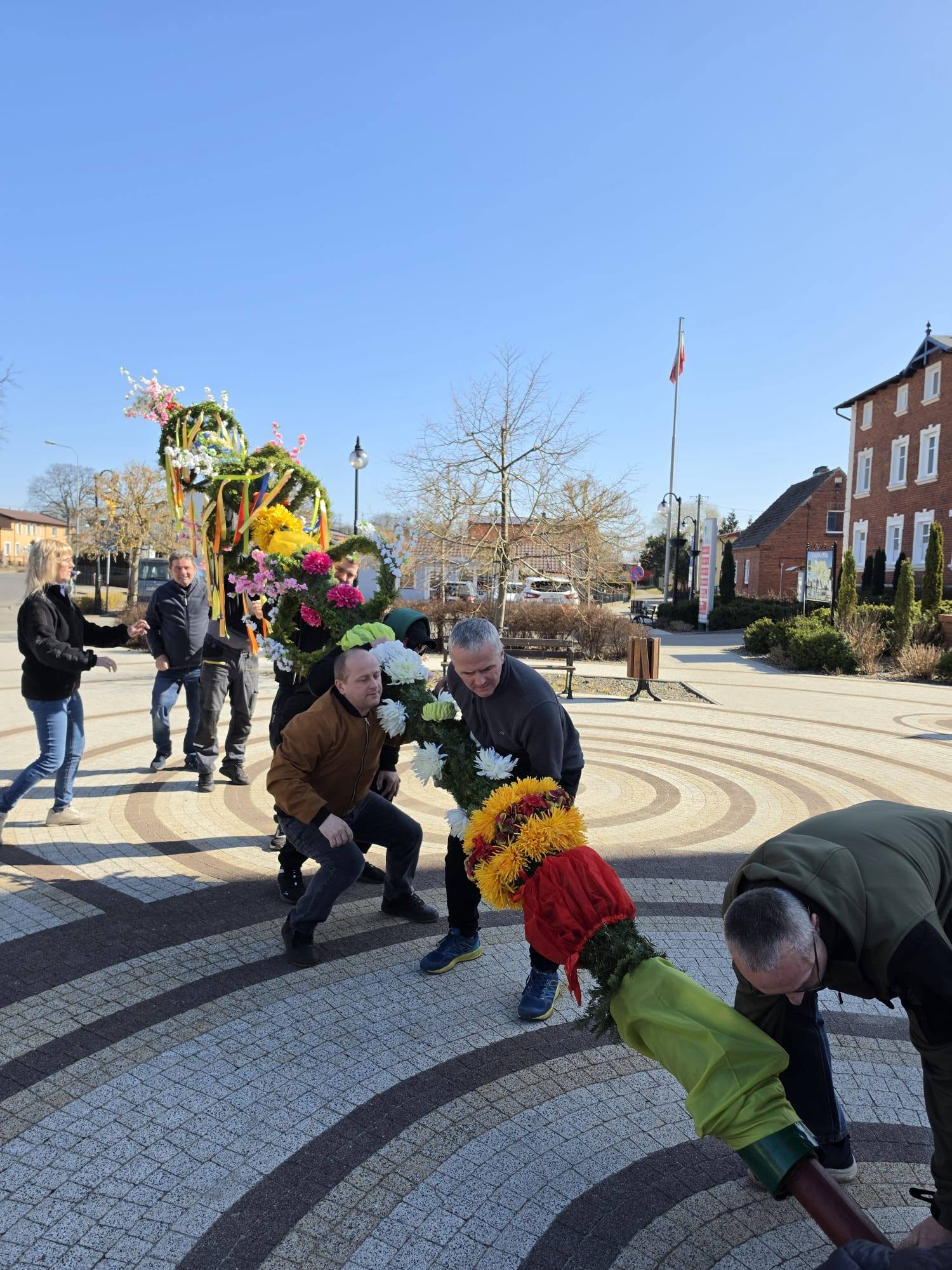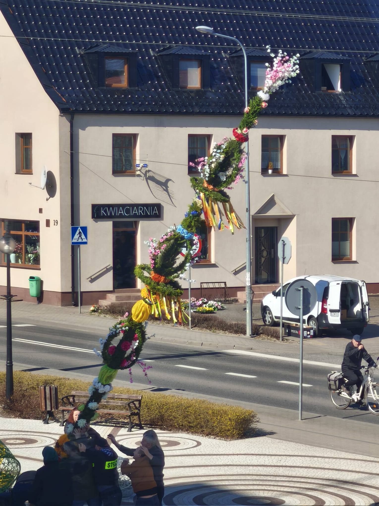 Palma wielkanocna stanęła na placu przy kościele św. Kararzyny w Lipce 🌿