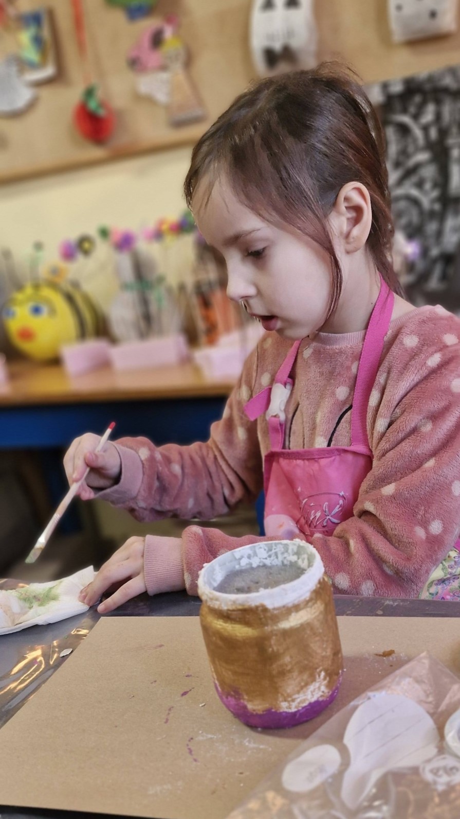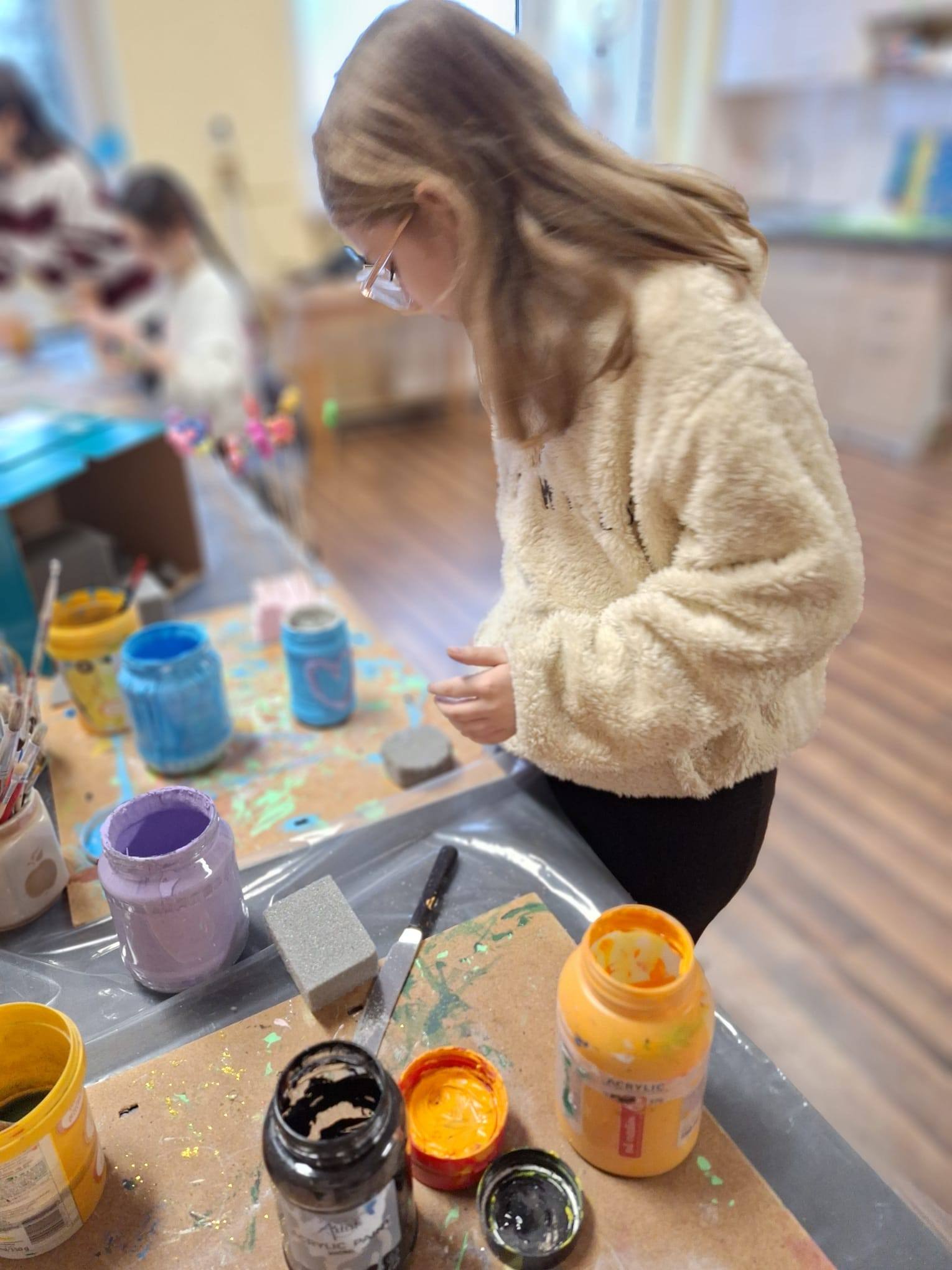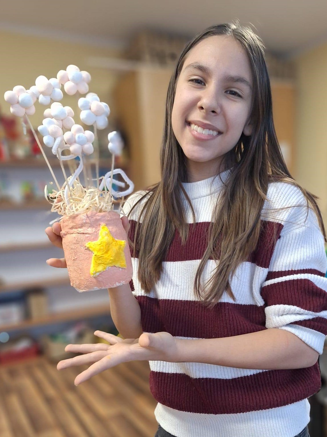 Dzieci na zajęciach wykonały kolorowe wazony oraz kwiatki. Prace posłużyły jako dekoracje, a niektóre z nich trafiły również jako miłe upominki, m.in. z okazji Dnia Babci