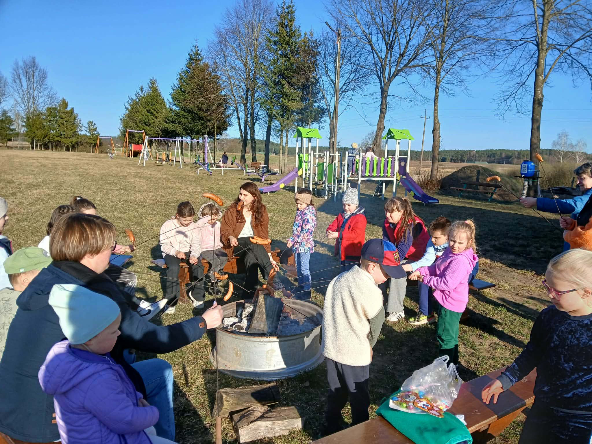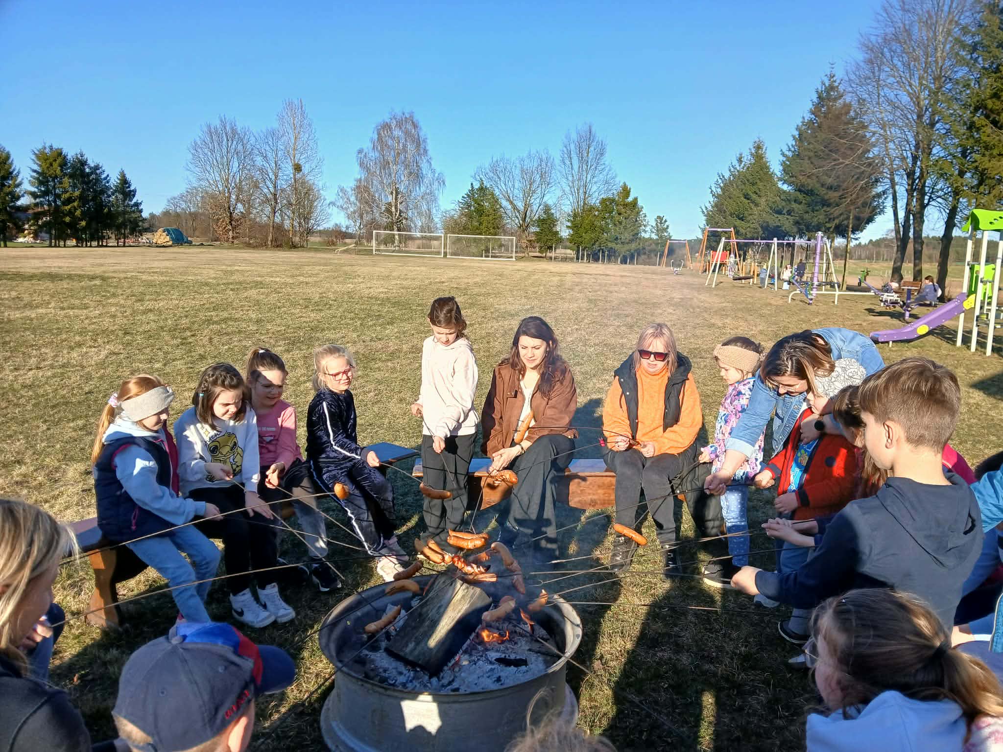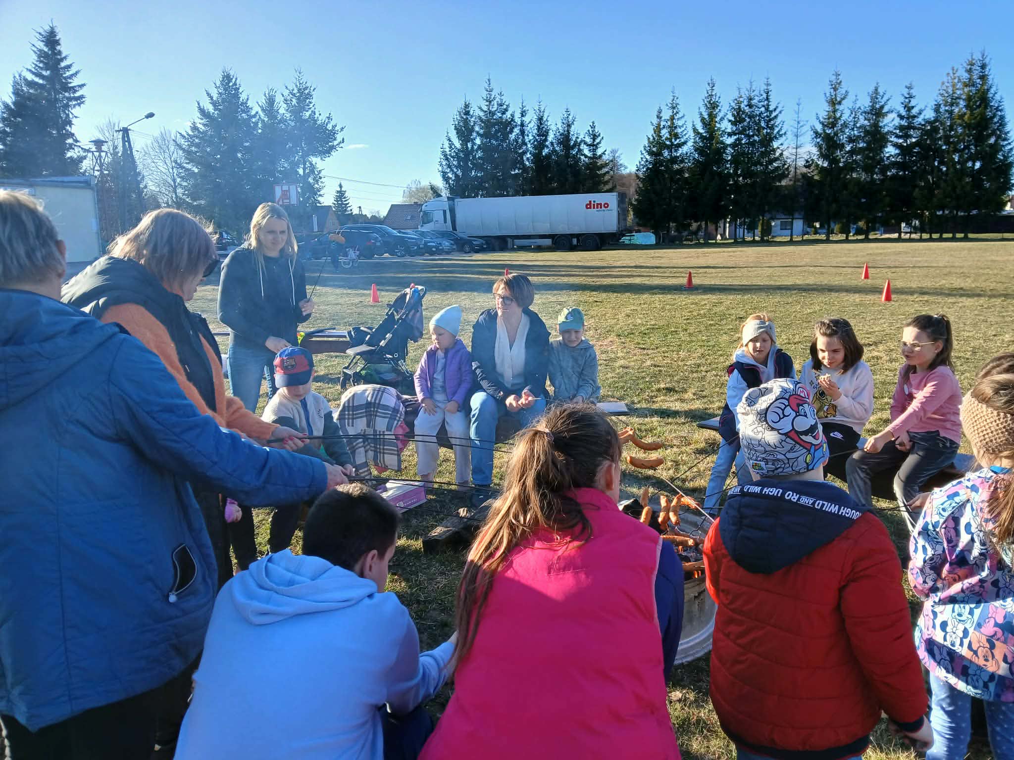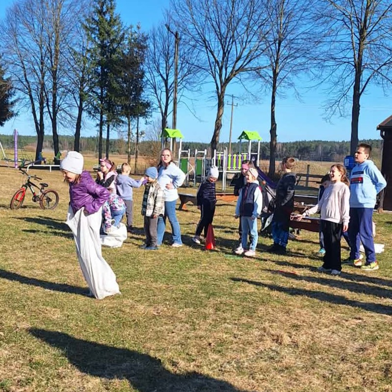 Dzieci chętnie brały udział w grach, zabawach i konkurencjach sportowych, a na zakończenie wszyscy wspólnie piekli kiełbaski przy ognisku. 🔥