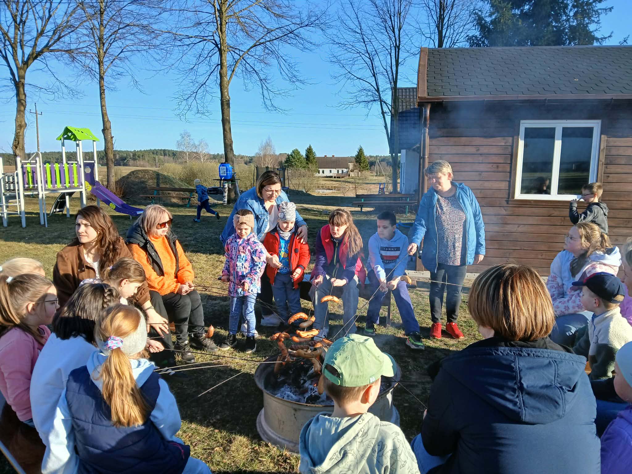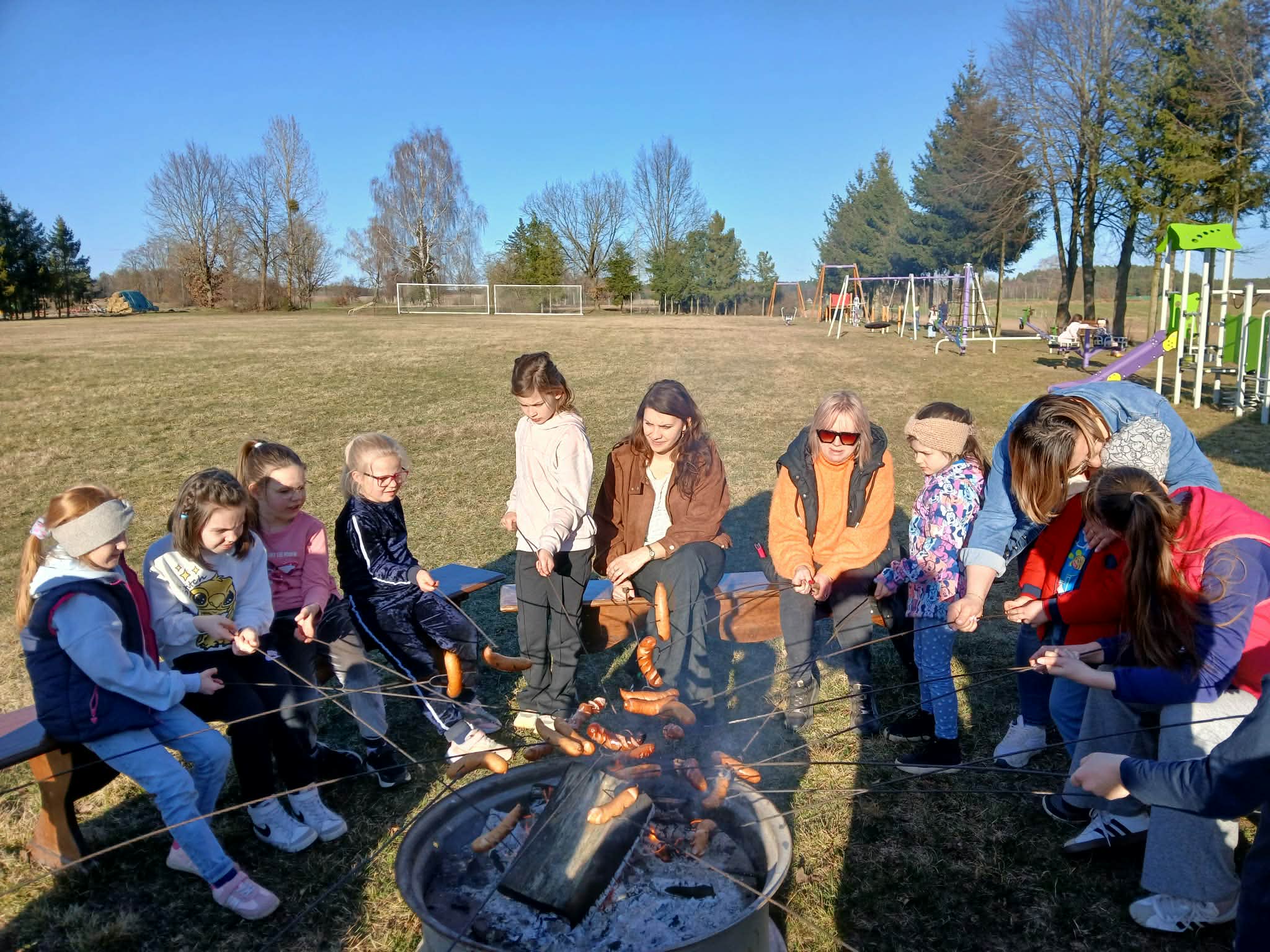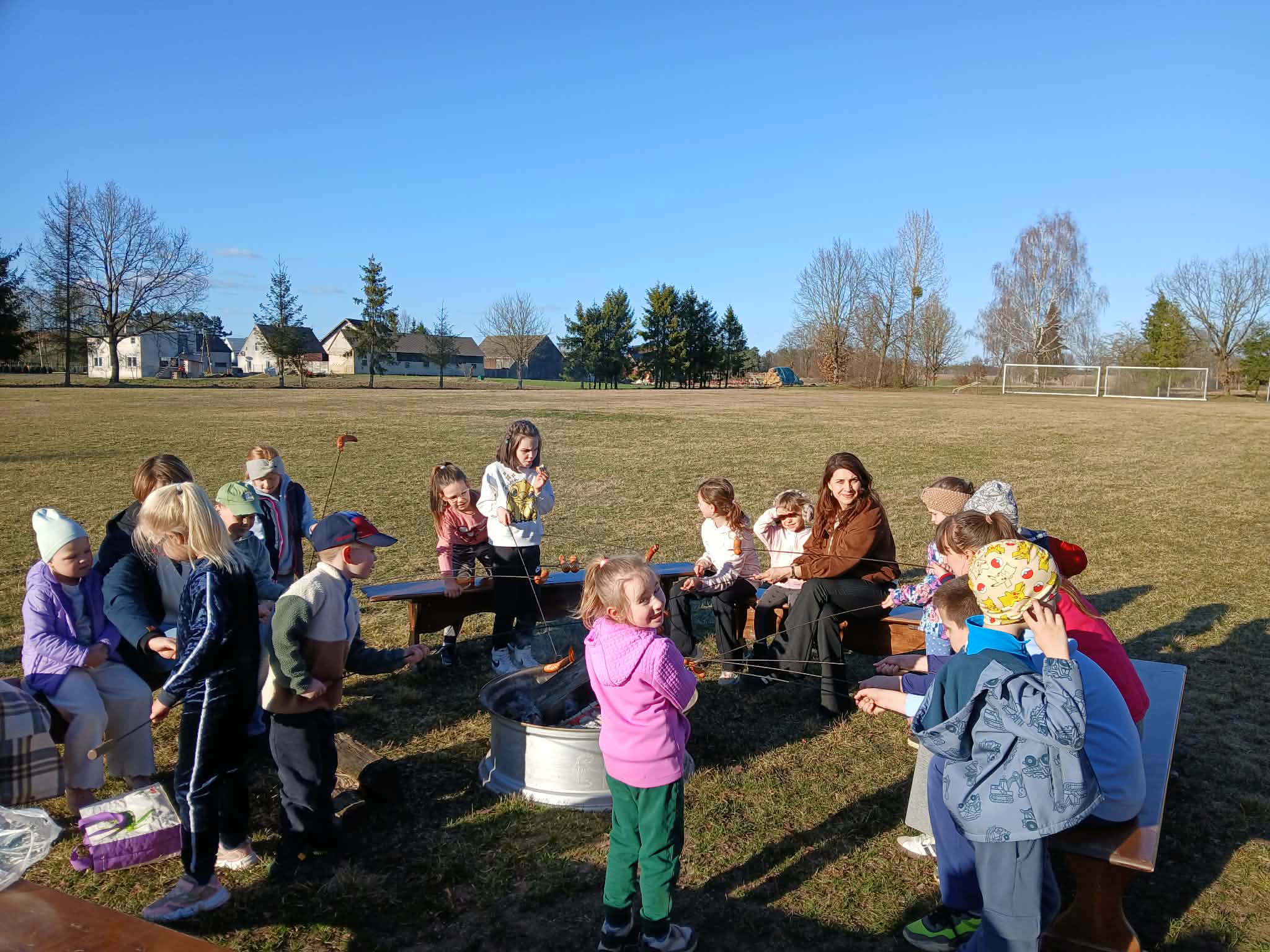 Dzieci chętnie brały udział w grach, zabawach i konkurencjach sportowych, a na zakończenie wszyscy wspólnie piekli kiełbaski przy ognisku. 🔥